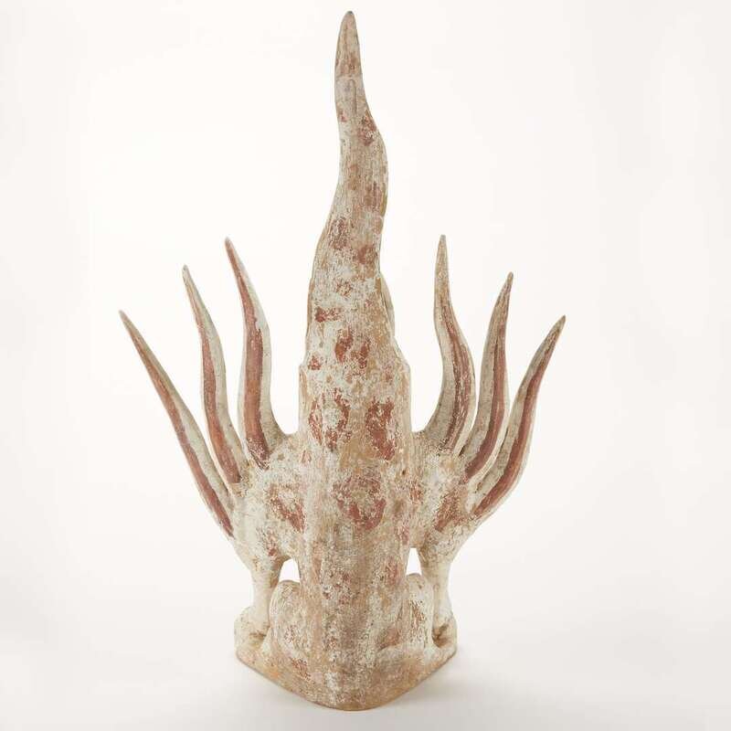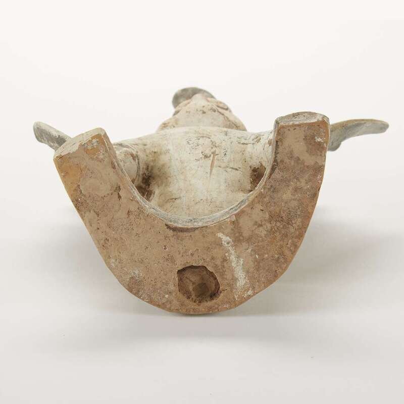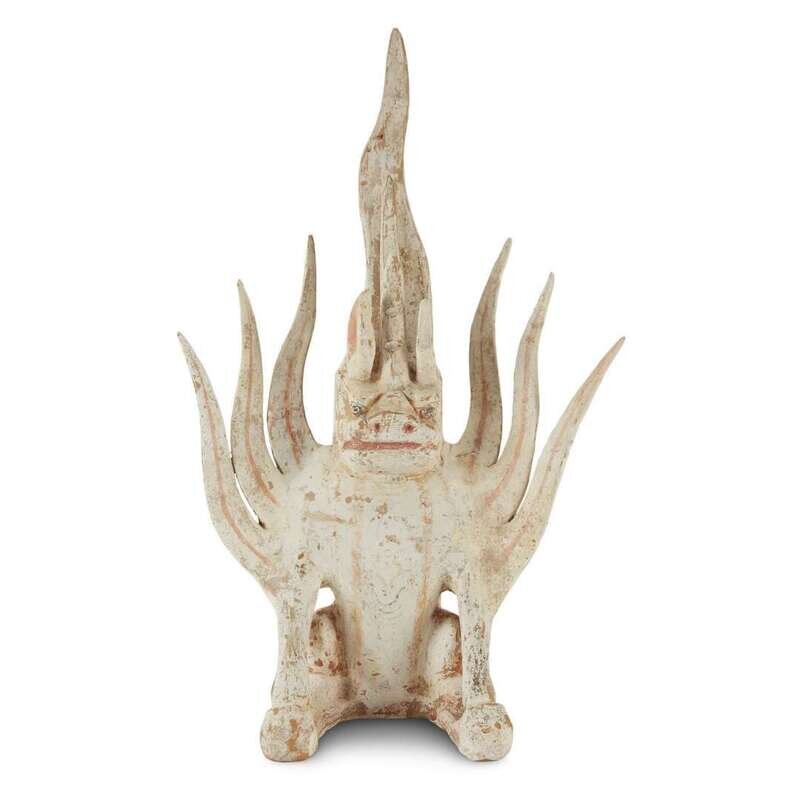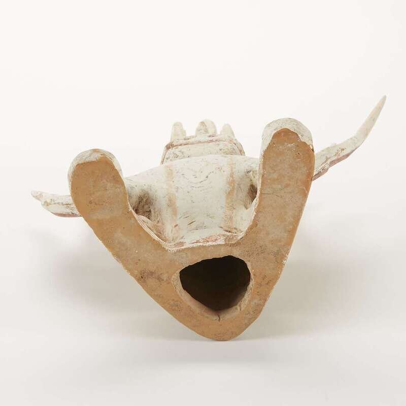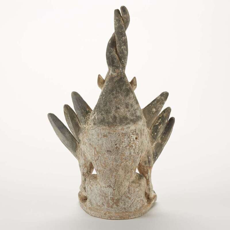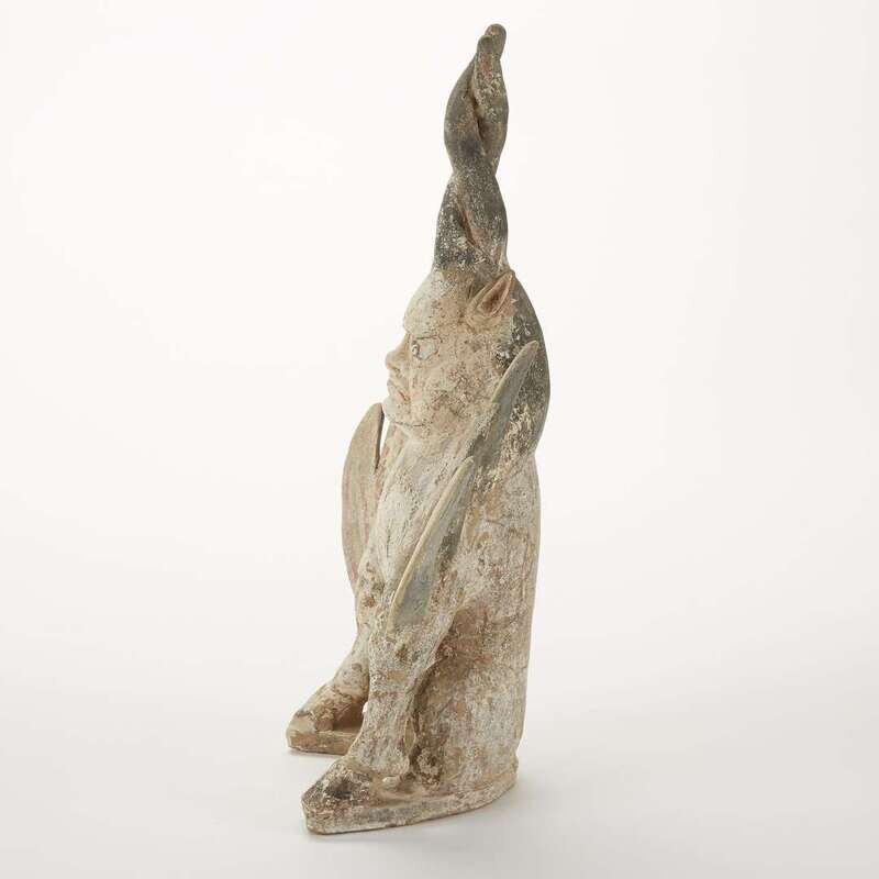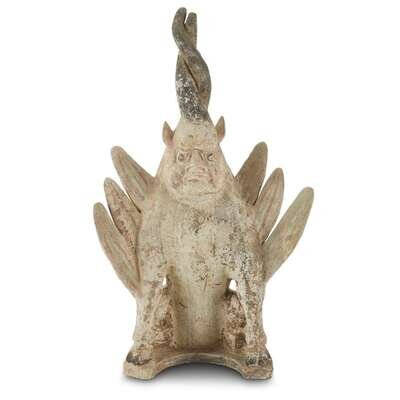 One a human-faced creature with entwined horns and three "wings" on each shoulder, remnants of pigments; the other depicting a seated beast with elaborate horned crest and serpentine "wings" to shoulders. . Accompanied by the results of Oxford Authentication thermoluminescence test #C101t66 and #C101t64, dated August 17, 2001, stating the results are consistant with the suggested age of manufacture.