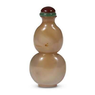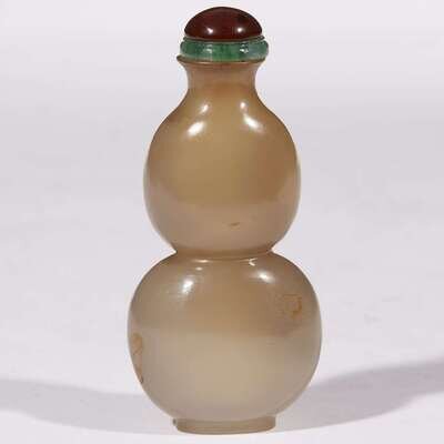 A Chinese carved grey and russet agate double-gourd snuff bottle