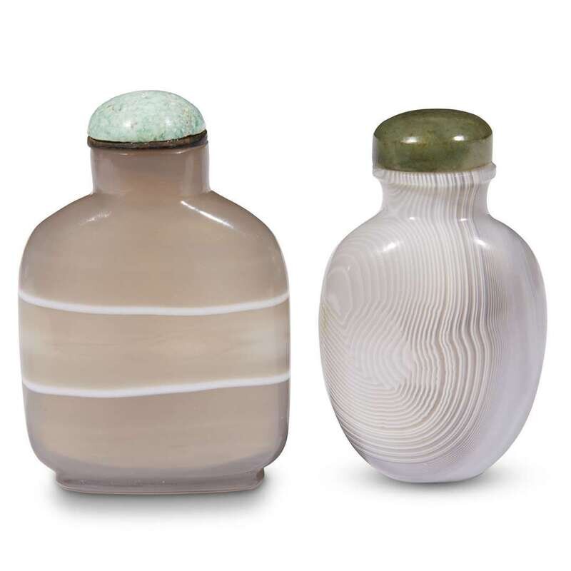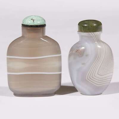 Two Chinese banded agate snuff bottles