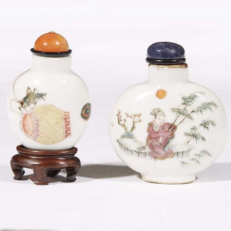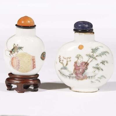 Two Chinese famille rose-decorated porcelain snuff bottles 19th century
