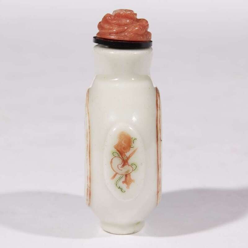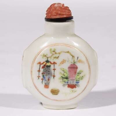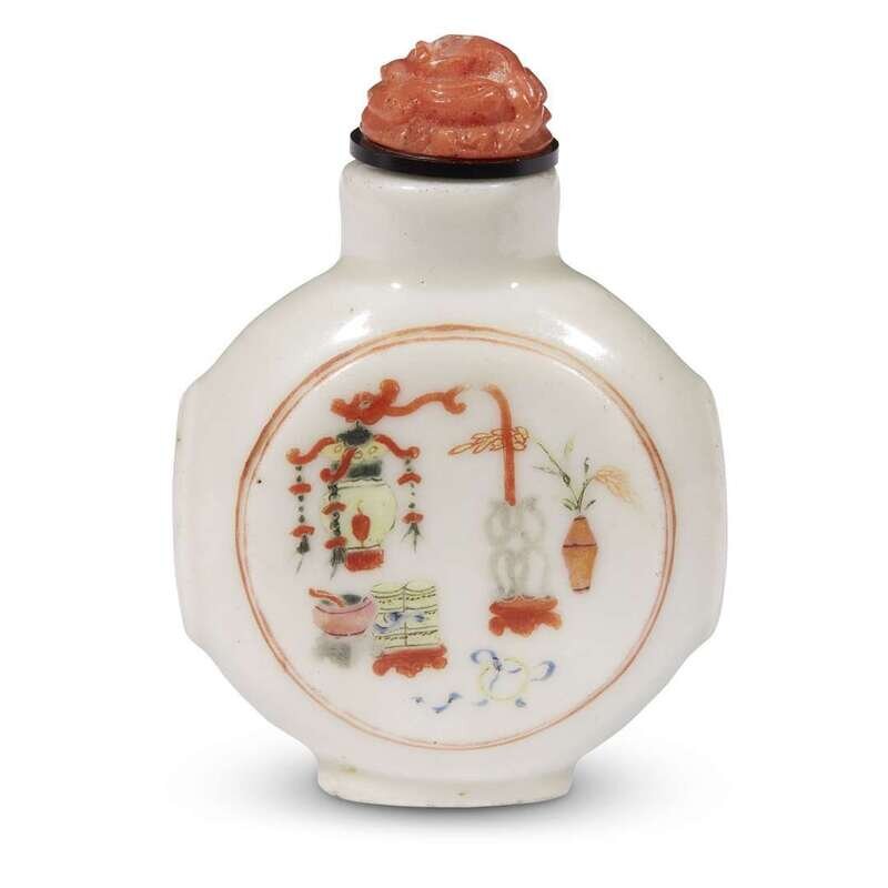 A Chinese famille rose-decorated porcelain snuff bottle Qianlong four-character mark