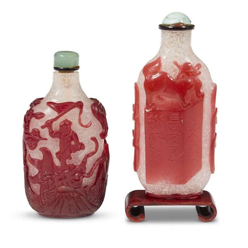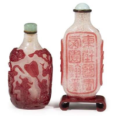 Two Chinese red-overlay cameo glass snuff bottles