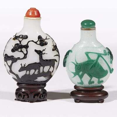 Two Chinese cameo glass snuff bottles.