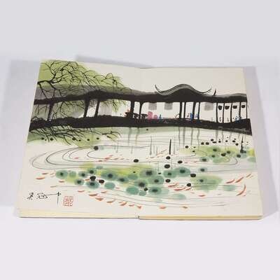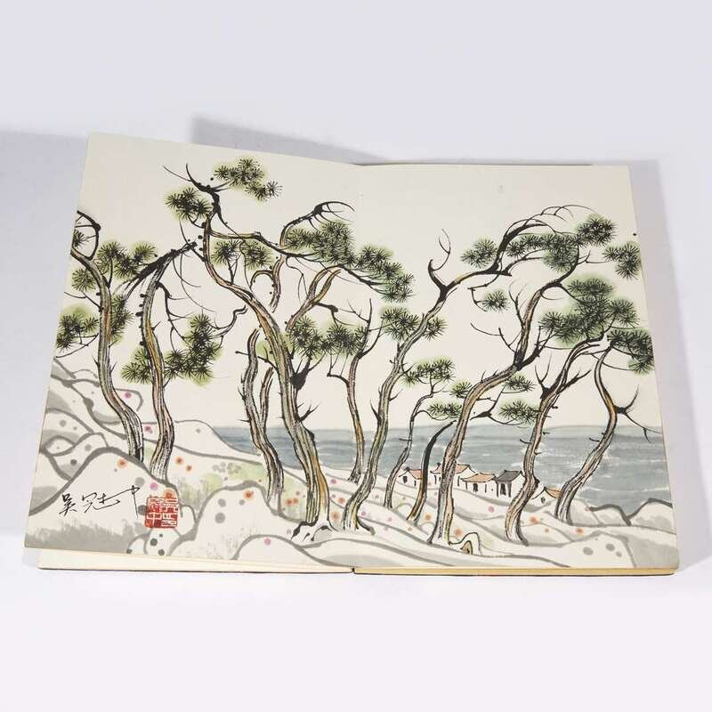 NINE LANDSCAPES Accordian album with brocade covers.