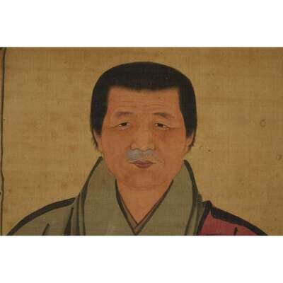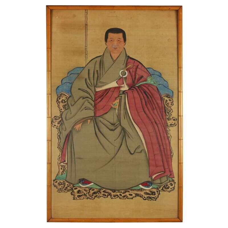 PORTRAIT OF A MONK Ink and color with gold on silk, laid down on board. Framed and glazed.