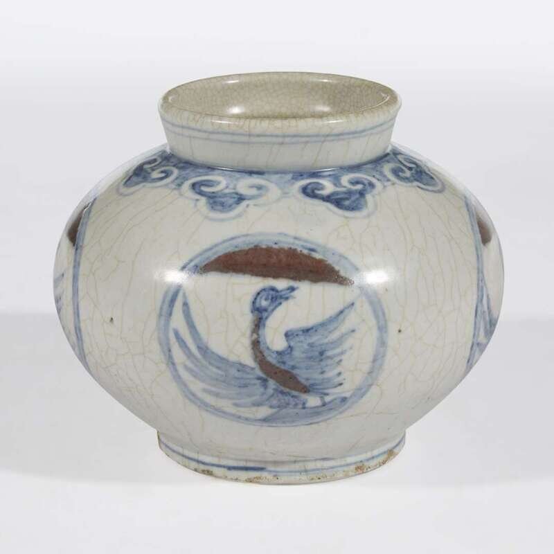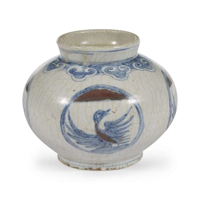 A Korean underglaze blue and red-decorated porcelain small "Cranes" jar Joseon dynasty
