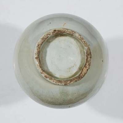 Decorated with flower spray and butterfly, the glaze with craquelure and slight blue-green tint.