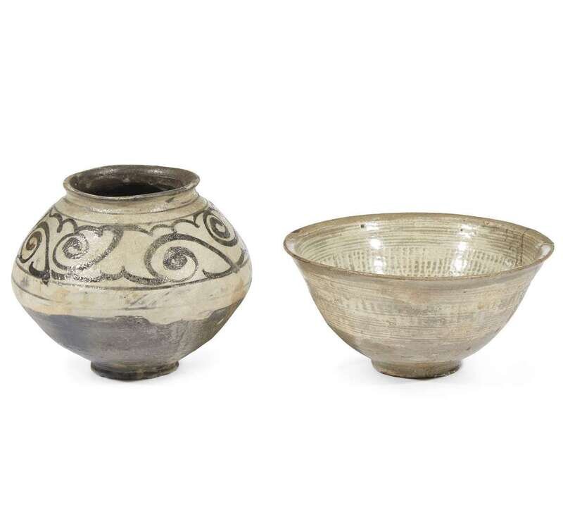 A Korean buncheong ware bowl and a small jar Joseon dynasty, 16th/17th century