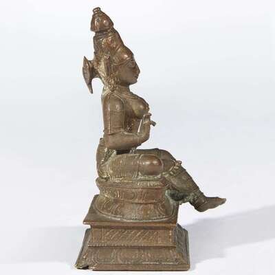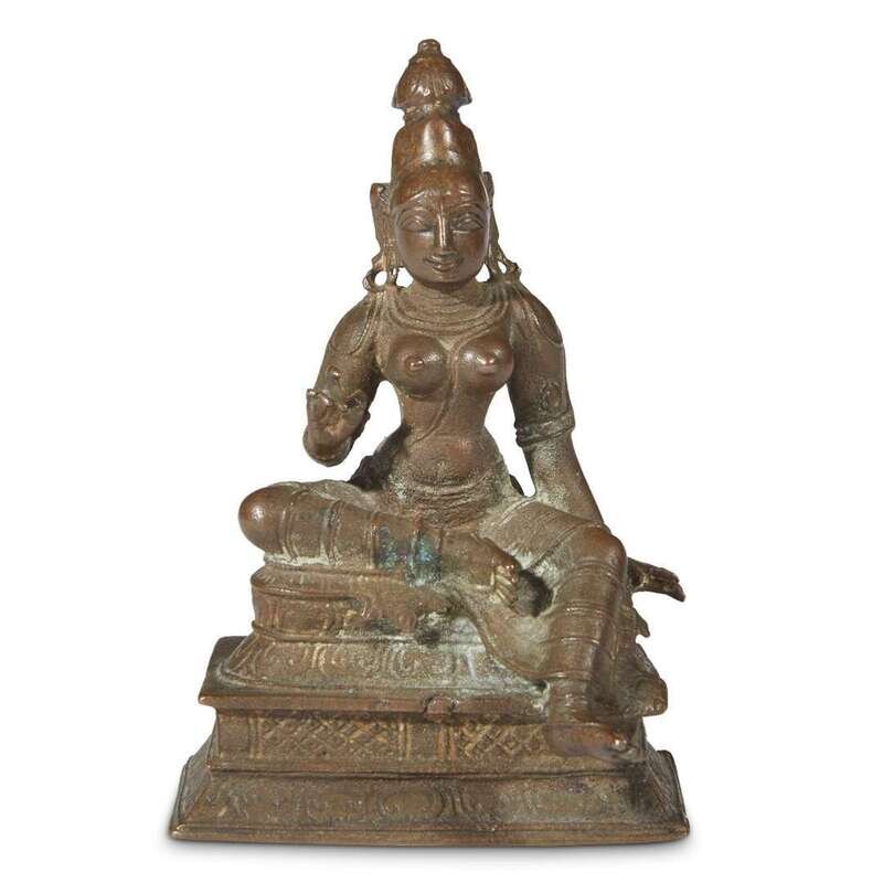 A small South Indian copper alloy figure of Bhoga Shakti (Parvati) 14th-17th century
