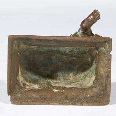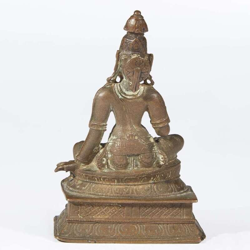 Well-cast, seated in lalitasana on double lotus throne, and stepped base dressed in dhoti.