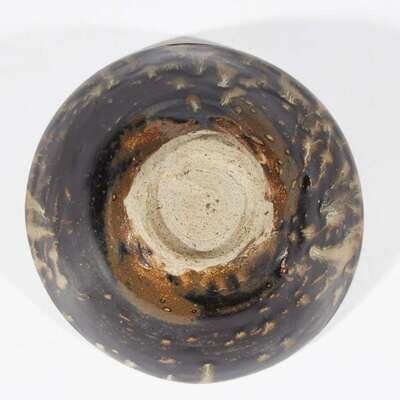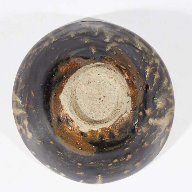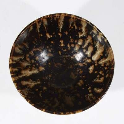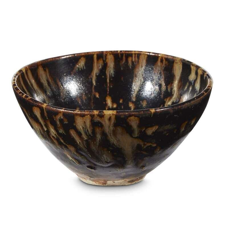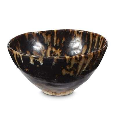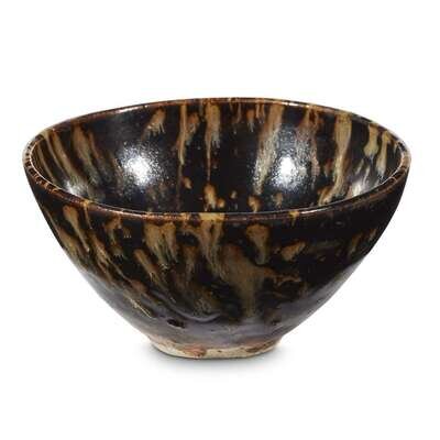 Of deep rounded sides flaring out from the foot, covered overall with a glossy dark brown glaze accented with random ochre splashes transmuting to a cafe au-lait tone, all finishing just above the knife-pared foot, unglazed revealing the buff body, cloth box. EXHIBITED: Morristown, New Jersey, Morris Museum, "Harmony in Clay: the Elegance and Refinement of Song Ceramics", March 8-June 24, 2012, #76 PUBLISHED: "Song Ceramics, the Eight Kiln Groups at a Glance, Examples from the Jiyuanshanfang Collection, 2008, p. 346.