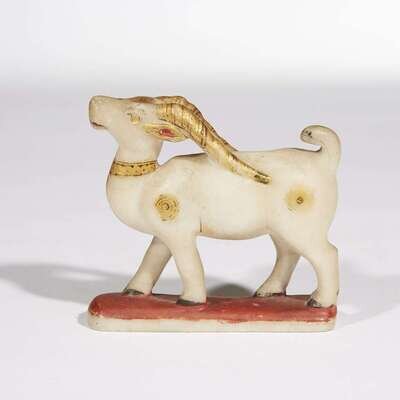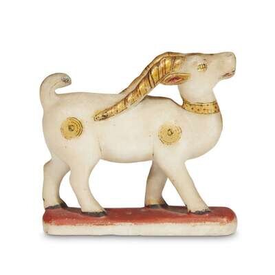 A carved white marble and parcel-gilt Indian figure of an antelope (Chinkara), probably Rajasthan 19th/20th century