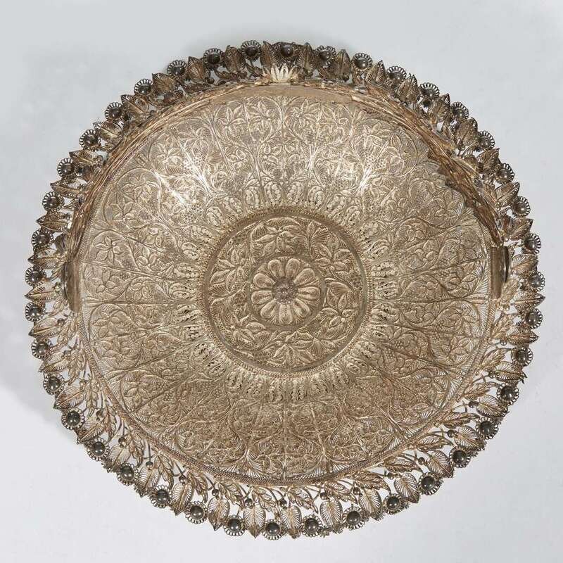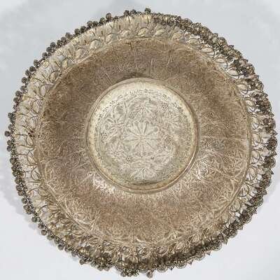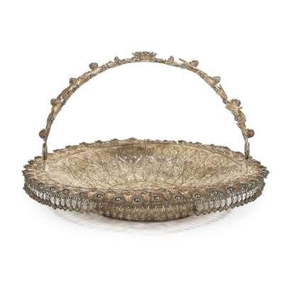 A Southeast Asian or Chinese silver swing-handle filigree basket 19th century