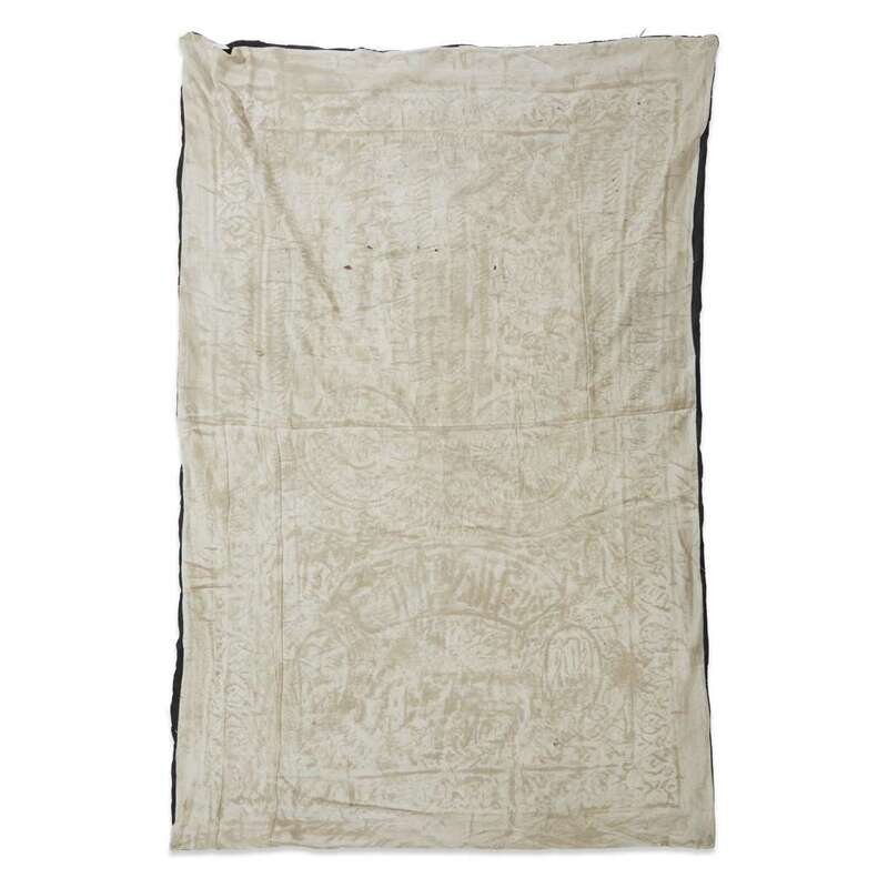 An Ottoman silk and metallic thread-embroidered black-ground curtain circa 1813