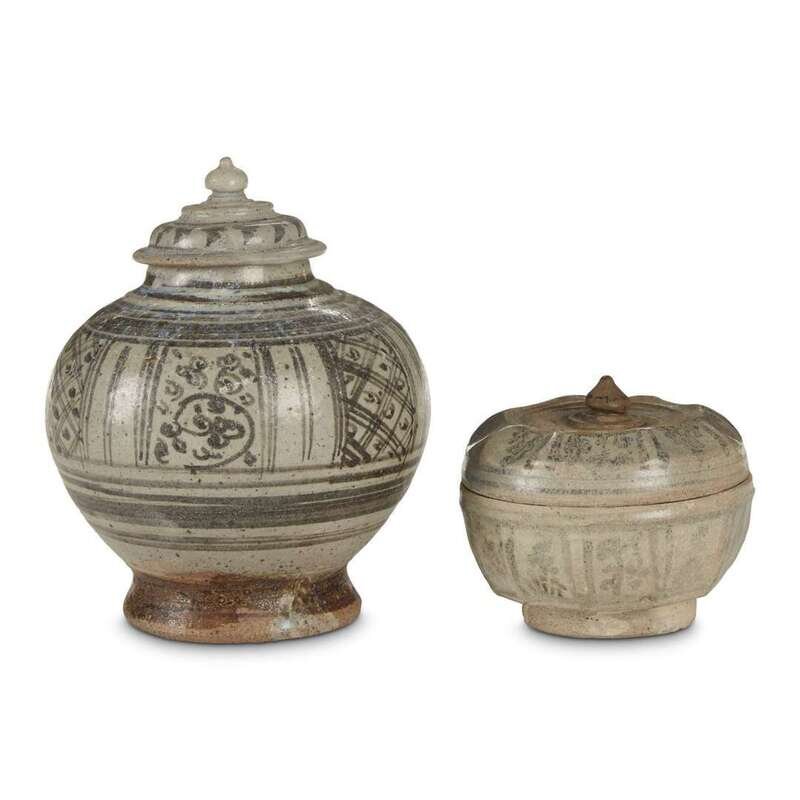 A Thai iron brown-decorated stoneware covered jar and a box, Sawankhalok kilns 14th to 16th century