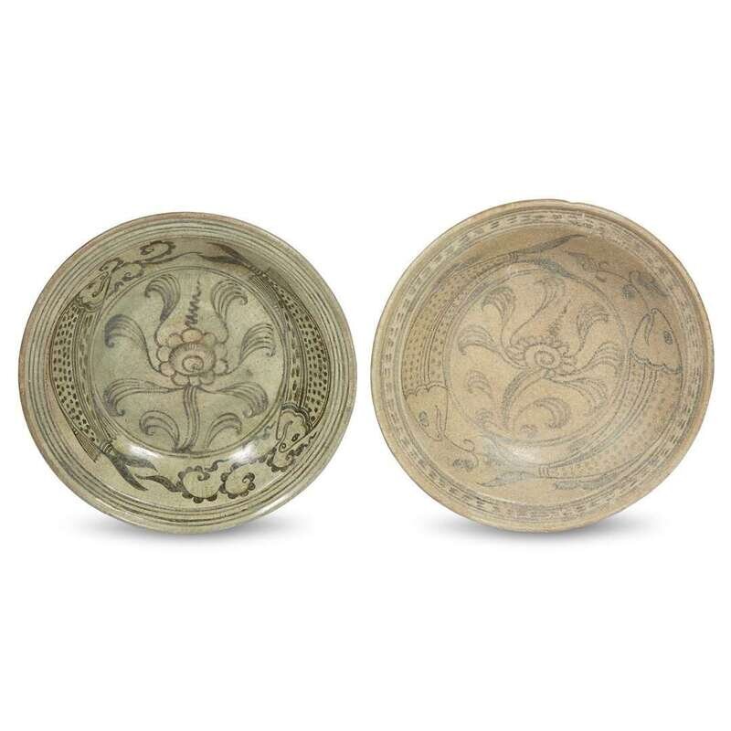 Two Thai iron brown-decorated "Twin Fish" dishes, Sawankhalok kilns 14th to 16th century