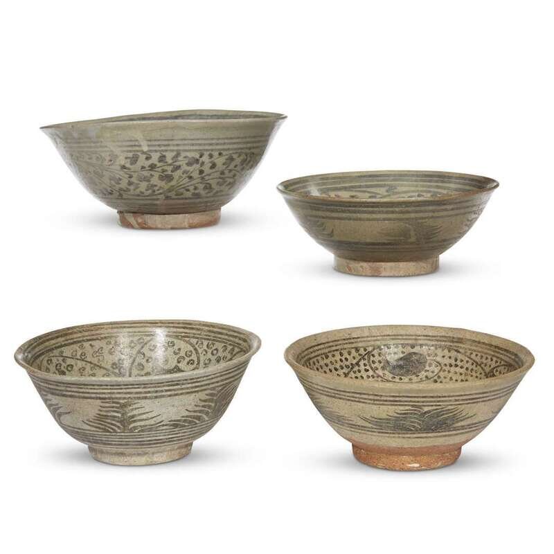 A group of four assorted Thai iron brown-decorated stoneware bowls, Sawankhalok kilns 14th to 16th centuries