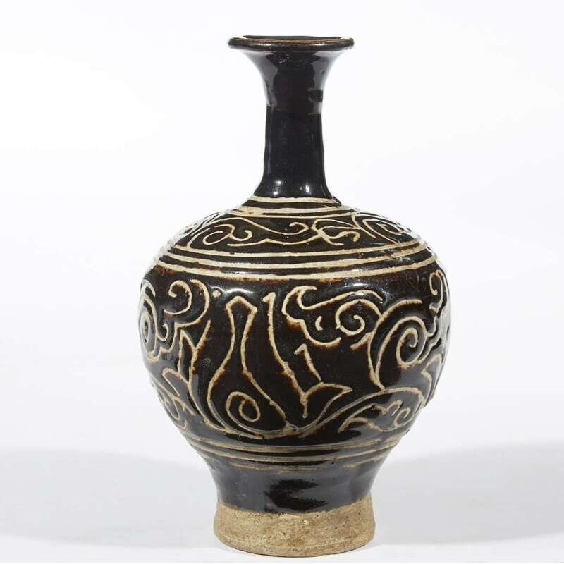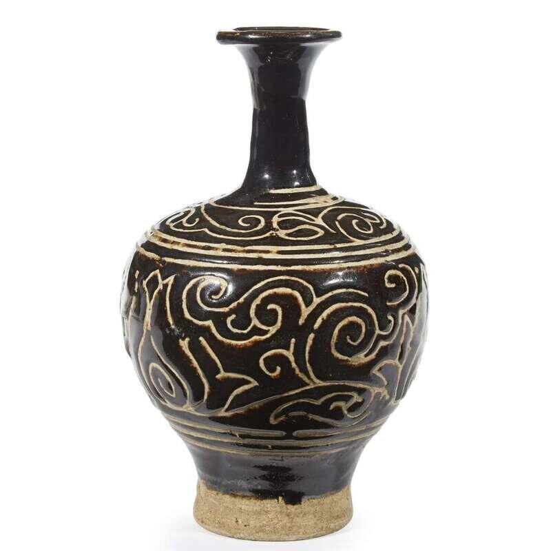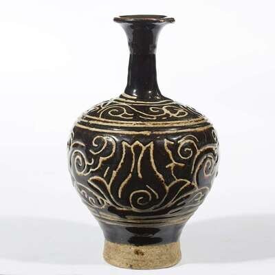 A Chinese incised black-glazed stoneware bottle vase Yuan dynasty