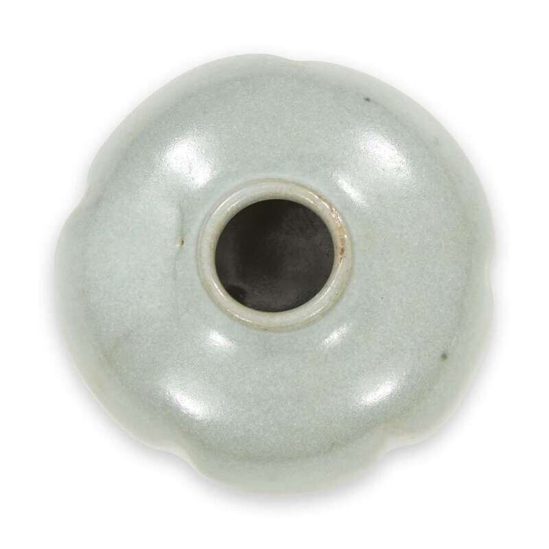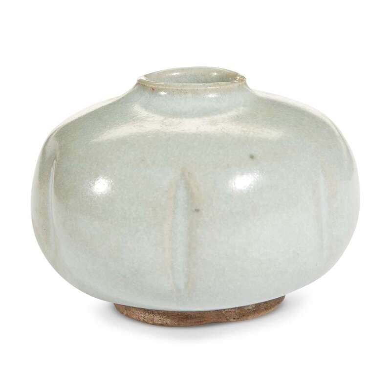 Of compressed globular form with low neck, circular foot, with pleasing grey-blue glaze. EXHIBITED: Morristown, New Jersey, Morris Museum, "Harmony in Clay: the Elegance and Refinement of Song Ceramics", March 8-June 24, 2012, #35 PUBLISHED: "Song Ceramics, the Eight Kiln Groups at a Glance, Examples from the Jiyuanshanfang Collection, 2008, p.250.