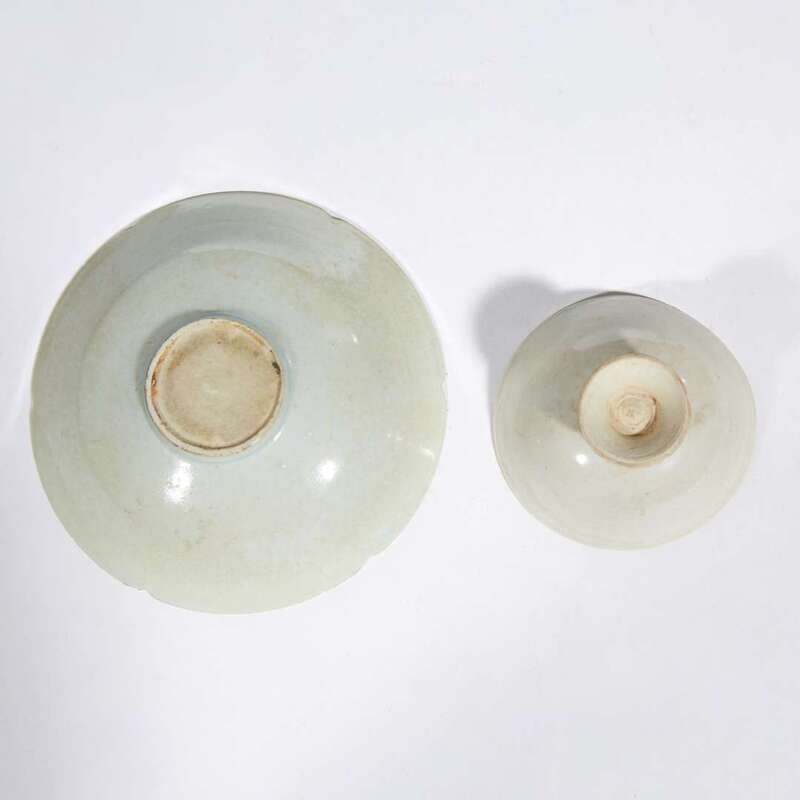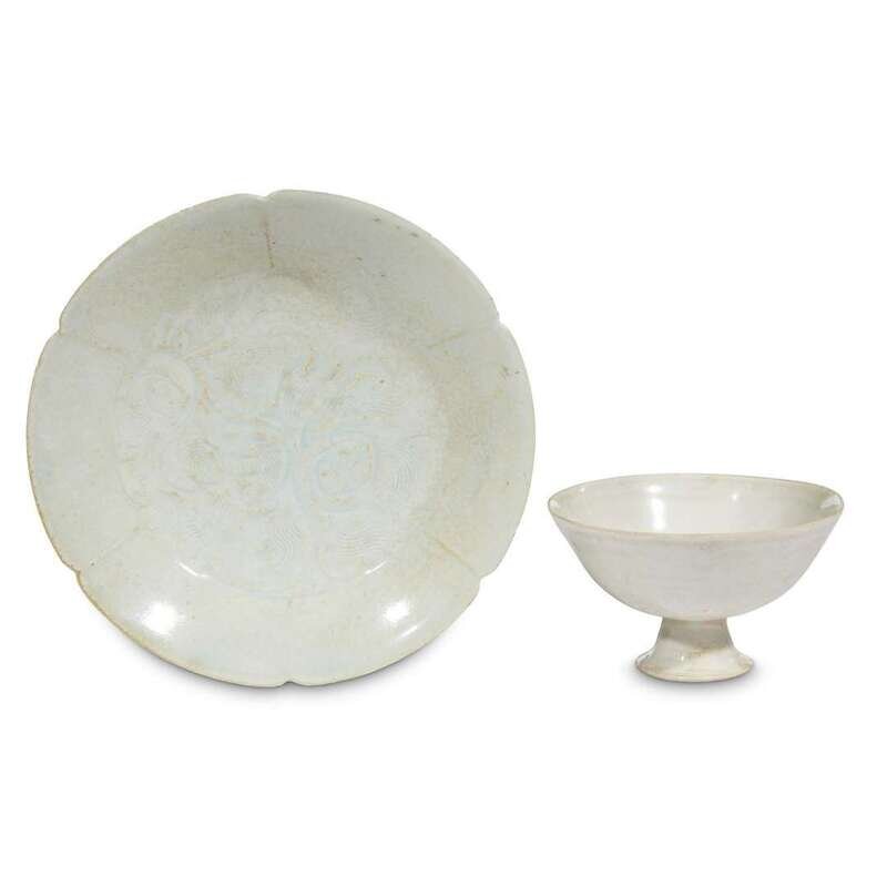 A Chinese qingbai footed cup and a peony-carved floriform bowl Song dynasty