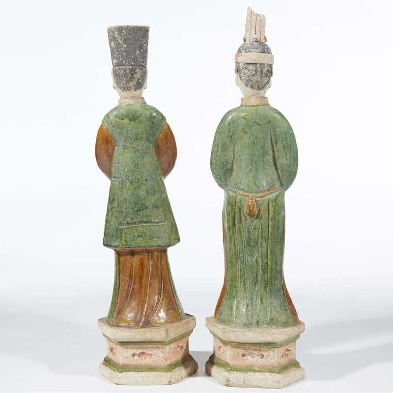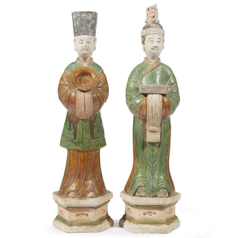 A pair of Chinese sancai-glazed and painted pottery attendants Ming dynasty