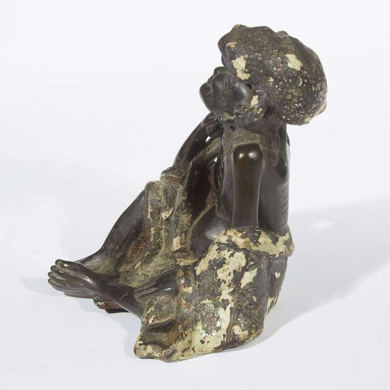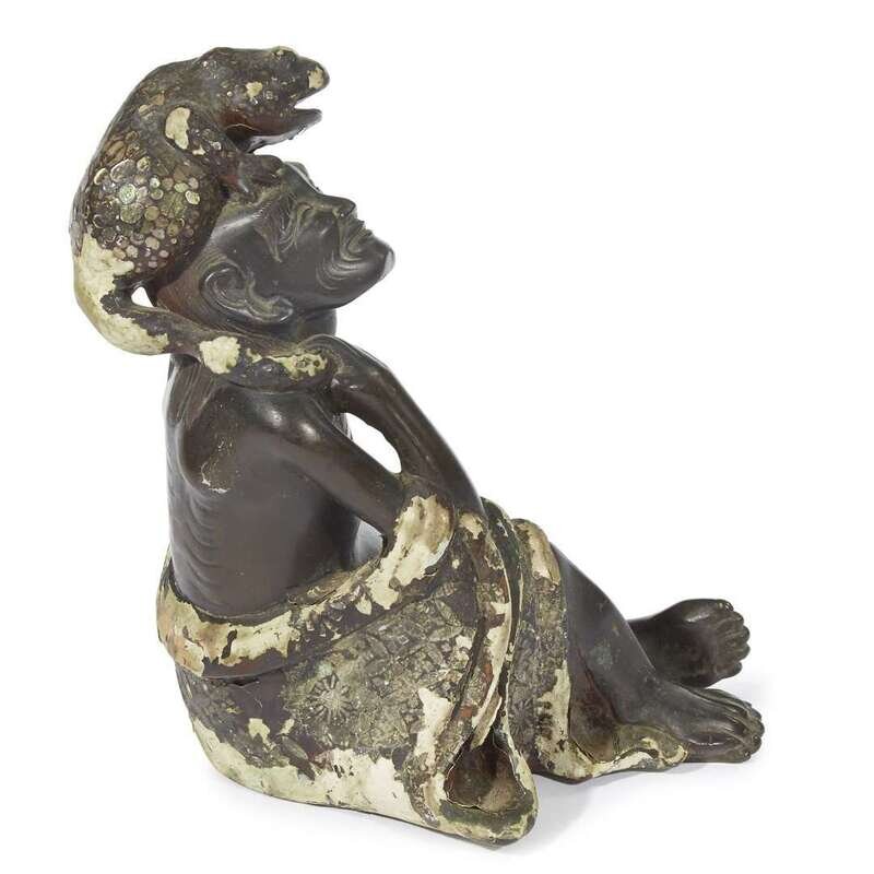 An unusual mother of pearl-embellished lacquered bronze figure of Liu Hai and toad late Ming-early Qing dynasty, 17th-18th century