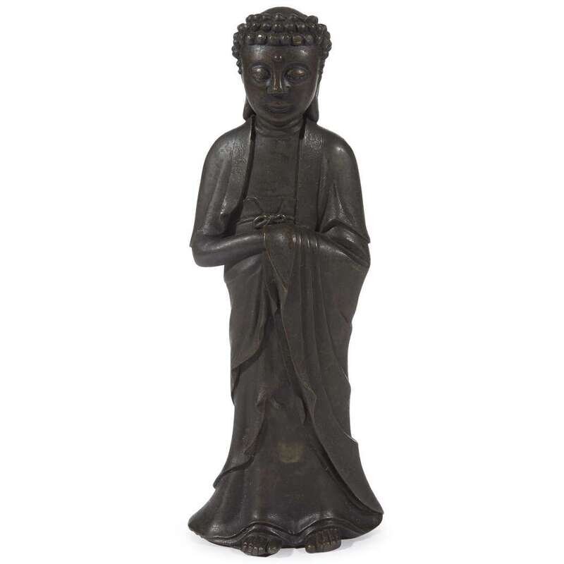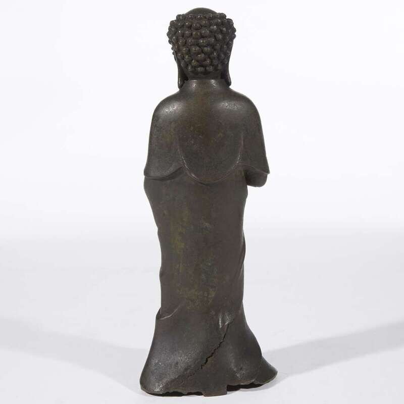 A Chinese patinated bronze figure of standing Buddha Ming dynasty