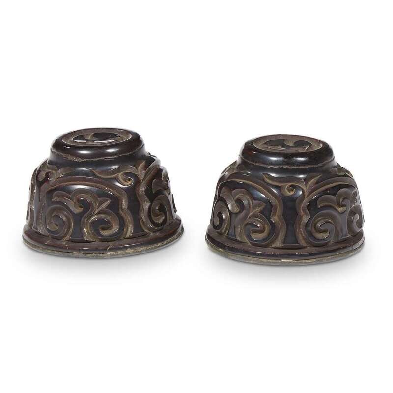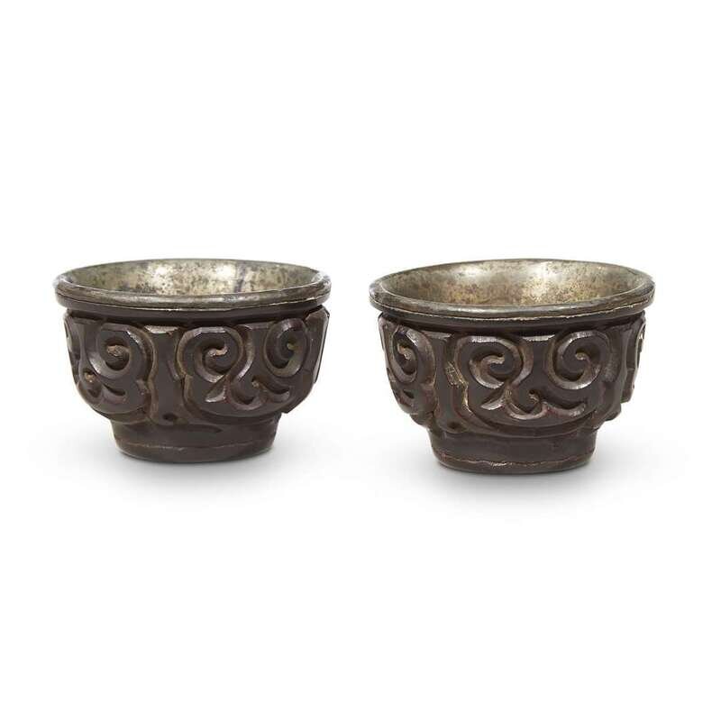 A pair of Chinese silver-lined "tixi" lacquer cups 17th/18th century or earlier