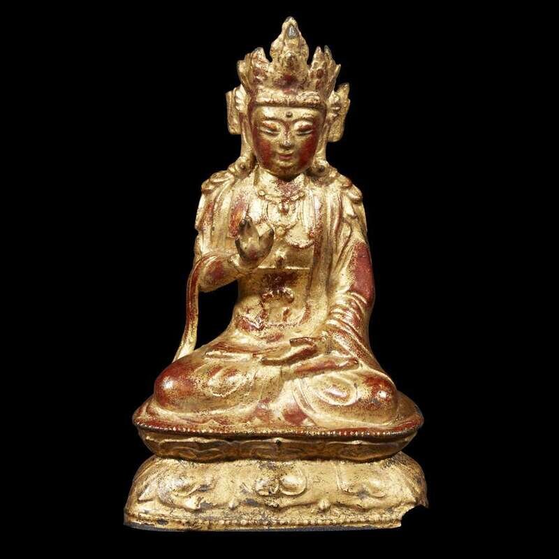 A Chinese lacquered bronze figure of seated Guanyin 16th/17th century