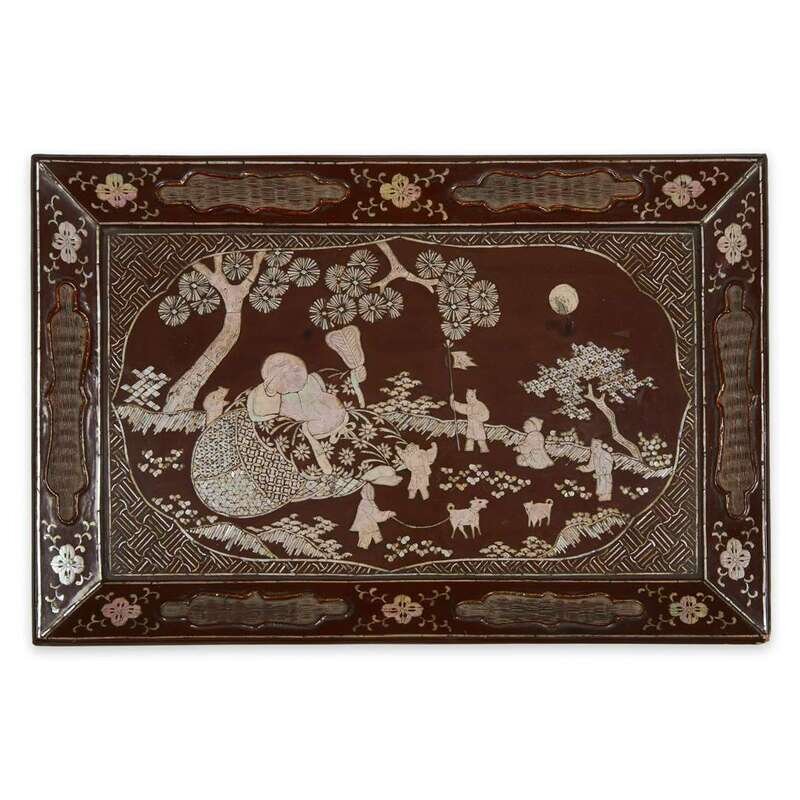 A Chinese mother of pearl-inlaid reddish-brown lacquer tray Ming dynasty, 17th century