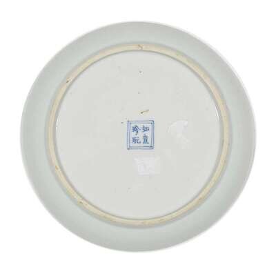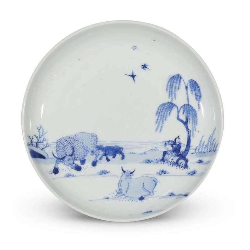 A Chinese blue and white porcelain "Playing Flute to the Water Buffalo" small dish 18th century