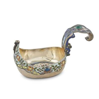 A RUSSIAN GEM-SET SILVER, SILVER-GILT AND SHADED CLOISONNÉ ENAMEL KOVSH Feodor Rückert, Moscow, 1896-1908