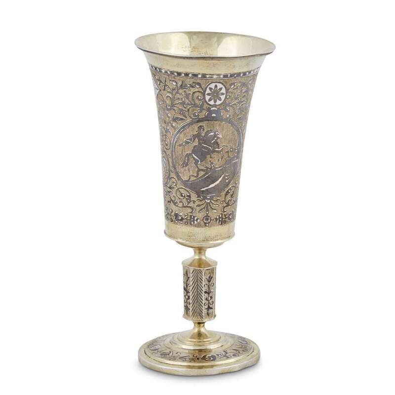 A RUSSIAN SILVER-GILT AND NIELLO CHAMPAGNE FLUTE unknown maker's mark of ak, Moscow, 1837