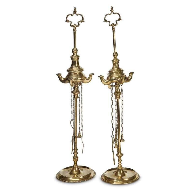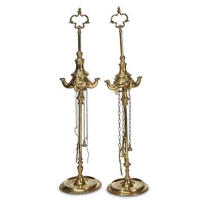 A PAIR OF OTTOMAN BRASS OIL LAMPS Turkey, 18th century