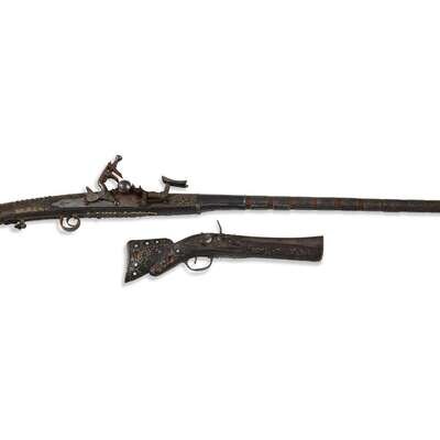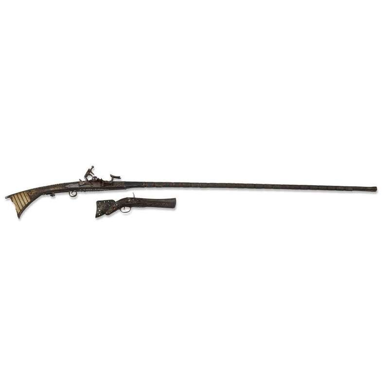 AN OTTOMAN SILVER-MOUNTED AND IVORY-INLAID FLINTLOCK RIFLE probably Balkans, late 18th century
