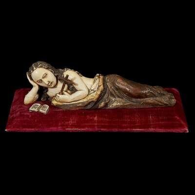 A CEYLON-PORTUGUESE CARVED IVORY AND WOOD FIGURE OF THE PENITENT MAGDALENE 17th century