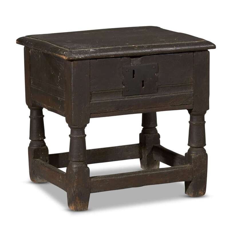 A JACOBEAN CARVED OAK JOINED WORKSTAND 17th century