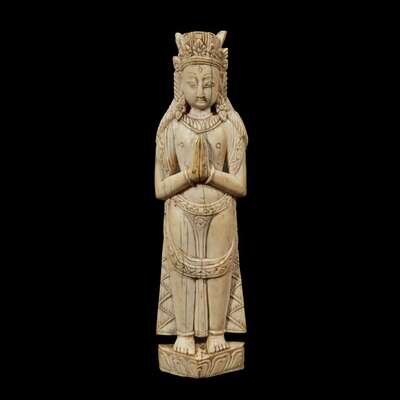 A CARVED IVORY FIGURE OF A BODHISATTVA STANDING, HAND IN ANJALI MUDRA possibly Nepalese, 18th/19th century