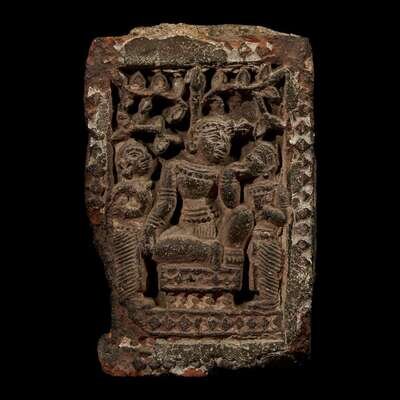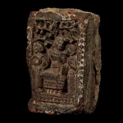 A SOUTHEAST ASIAN CARVED STUCCO AND TERRACOTTA ARCHITECTURAL FRAGMENT possibly 16th/17th century