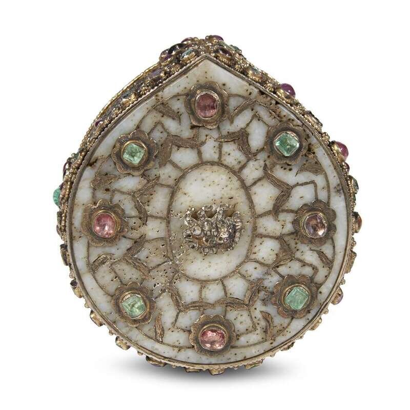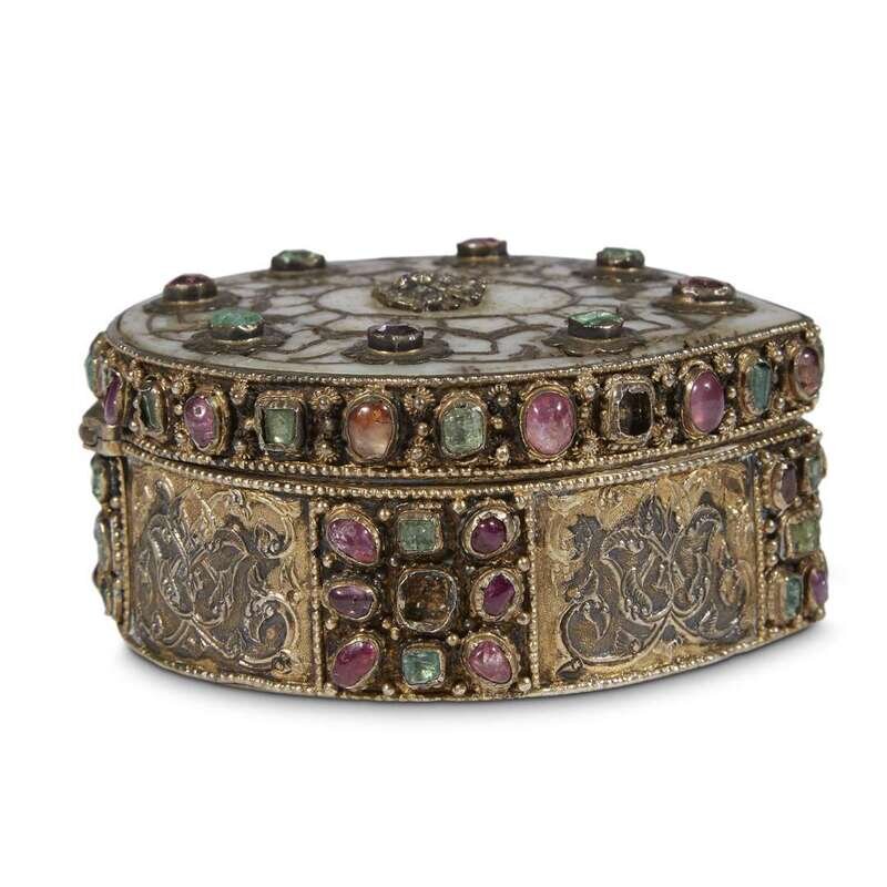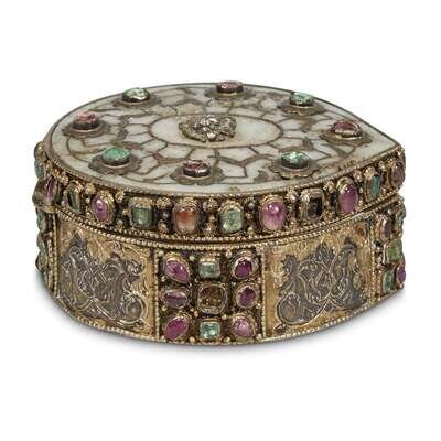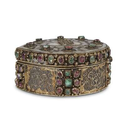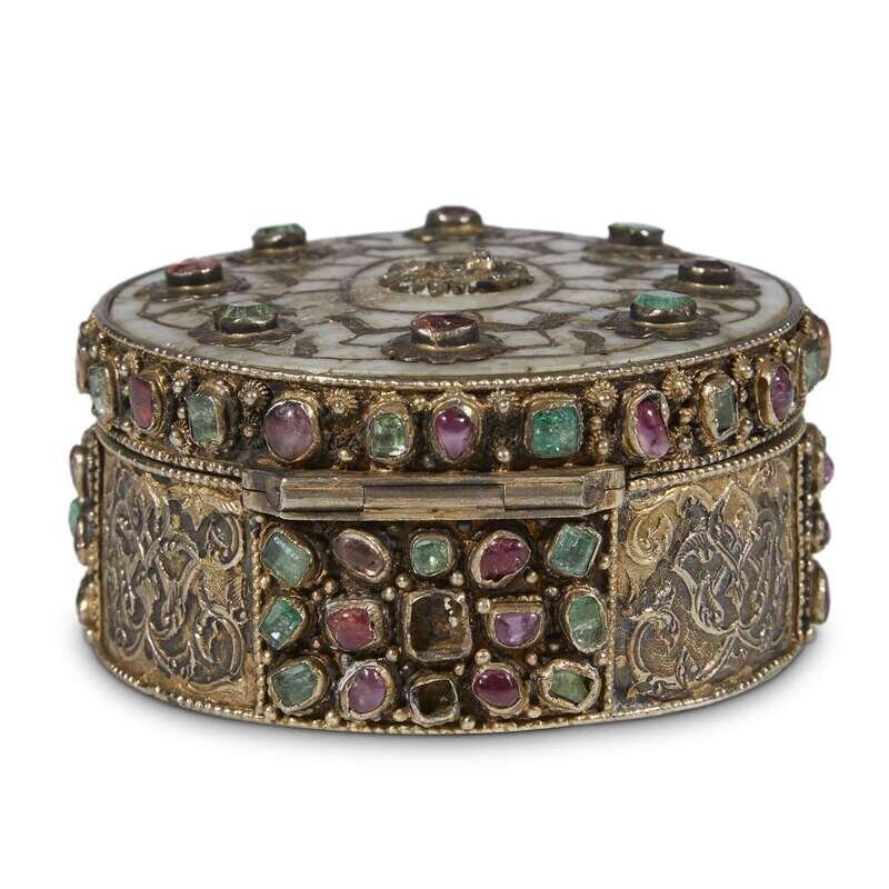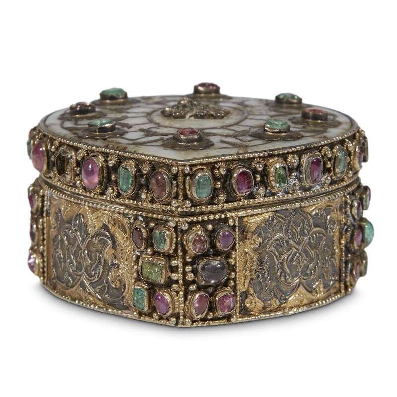 AN OTTOMAN GEM-SET NEPHRITE AND SILVER-GILT BOX Turkey, 17th century