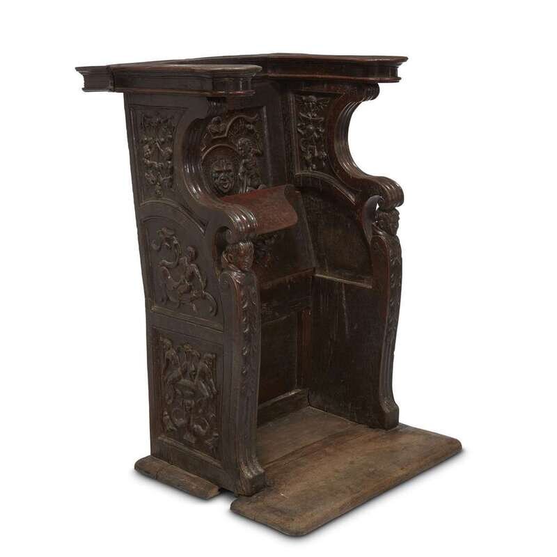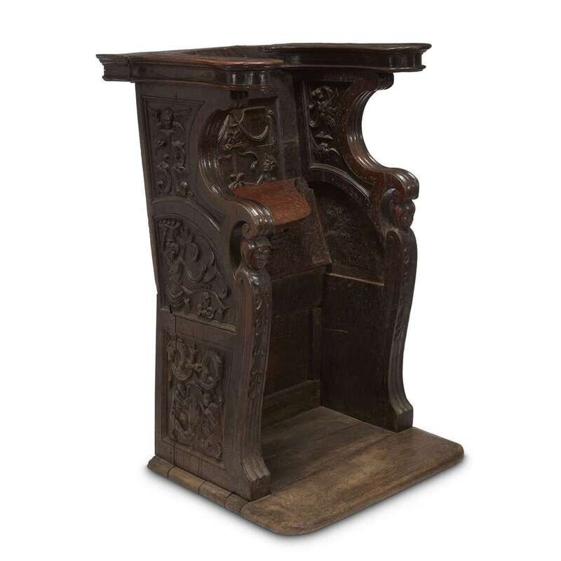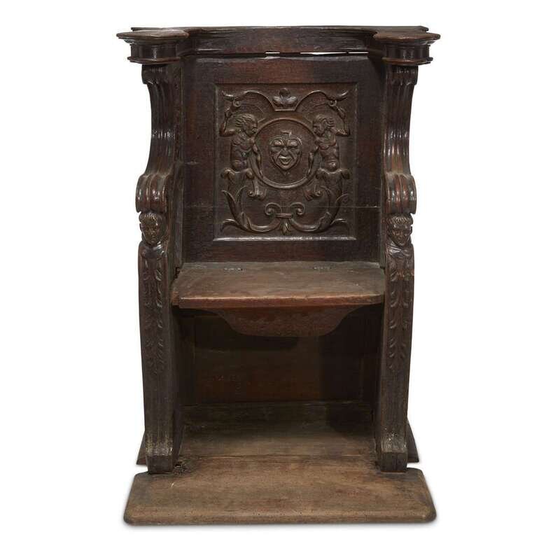 A PAIR OF JACOBEAN CARVED OAK CHOIR STALLS 17th century