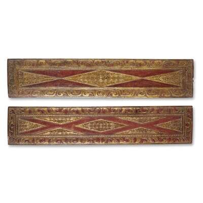 A PAIR OF TIBETAN CARVED, PARCEL GILT AND RED-LACQUERED WOOD SUTRA COVERS 16th/17th century or earlier