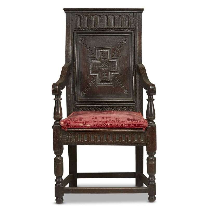 A JACOBEAN CARVED OAK WAINSCOT CHAIR 17th century