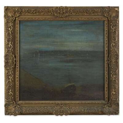 AMERICAN SCHOOL (19TH CENTURY) Foggy Landscape at Dusk