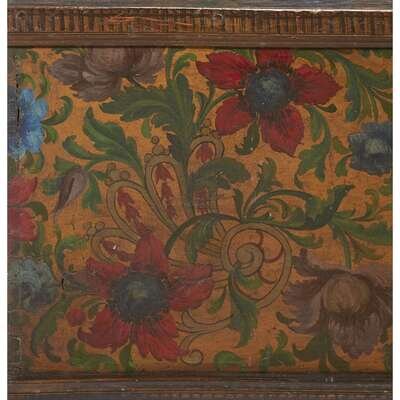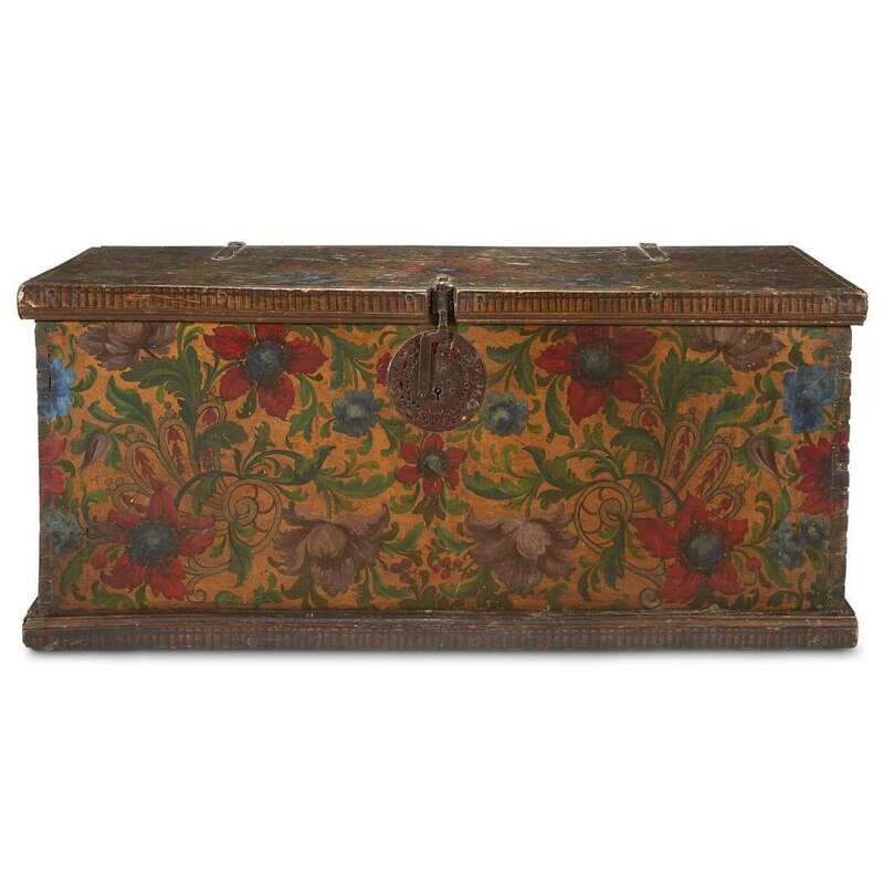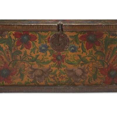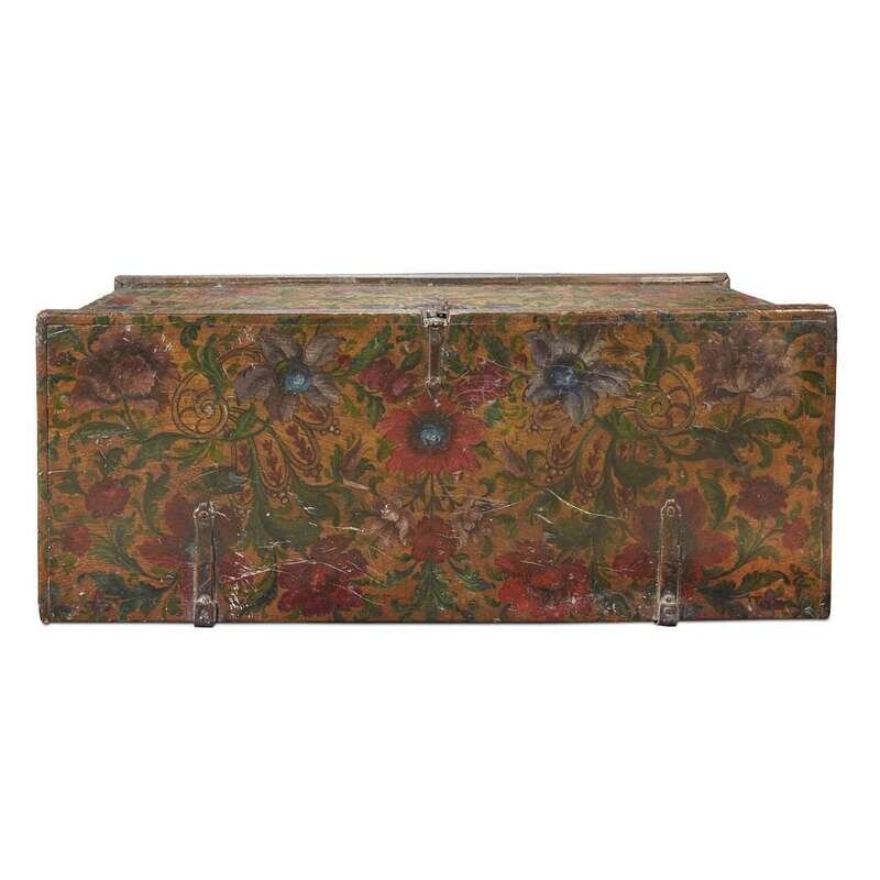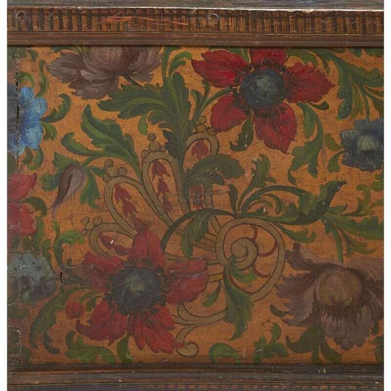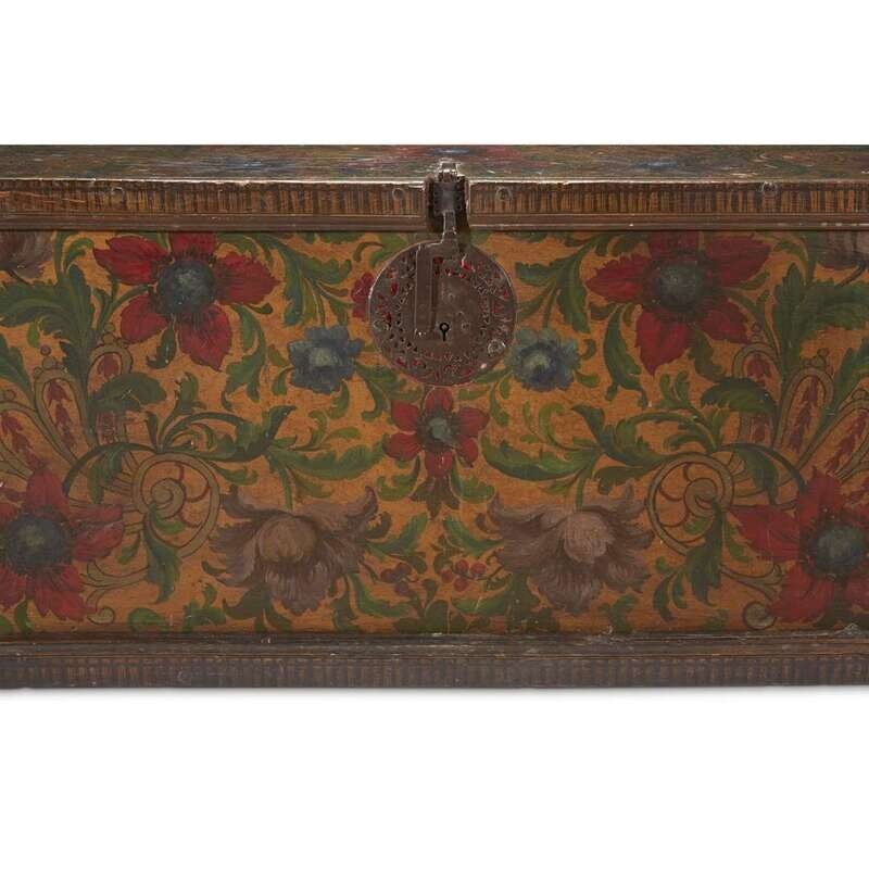 A SPANISH COLONIAL IRON-MOUNTED GILT AND POLYCHROME PAINTED BLANKET CHEST possibly Peruvian, 18th century