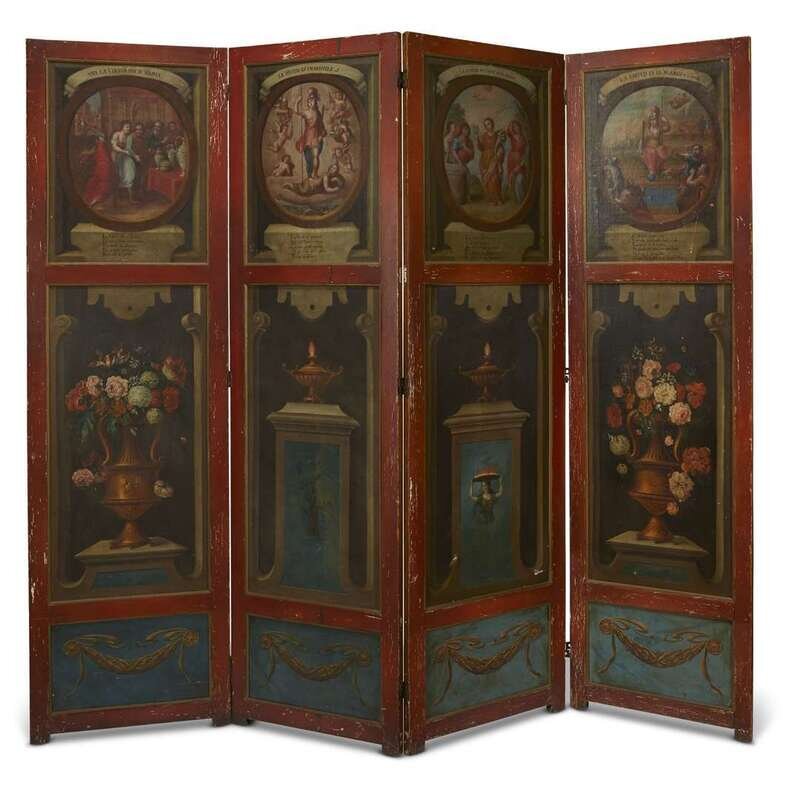 A MEXICAN BIOMBO WITH EMBLEMS FROM OTTO VAN VEEN'S HORATII EMBLEMATA 18th Century
