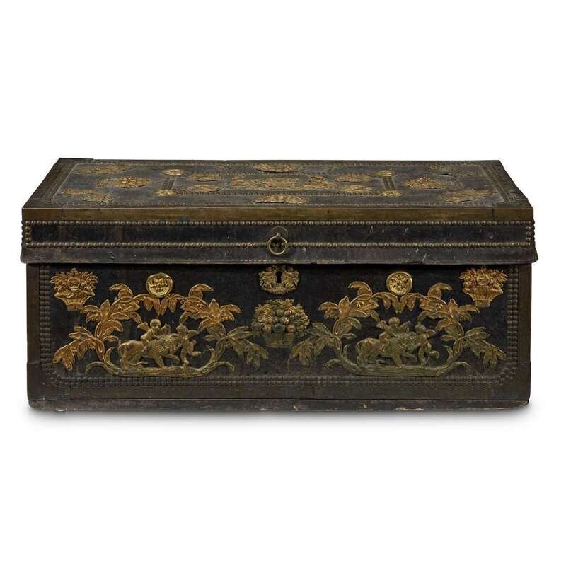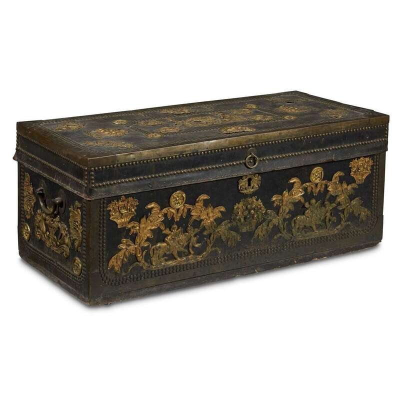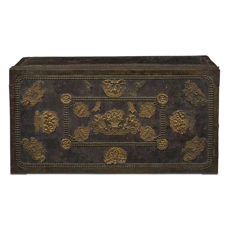 A RARE CHINESE EXPORT BRASS-MOUNTED TRUNK FOR THE MEXICAN MARKET 19th century