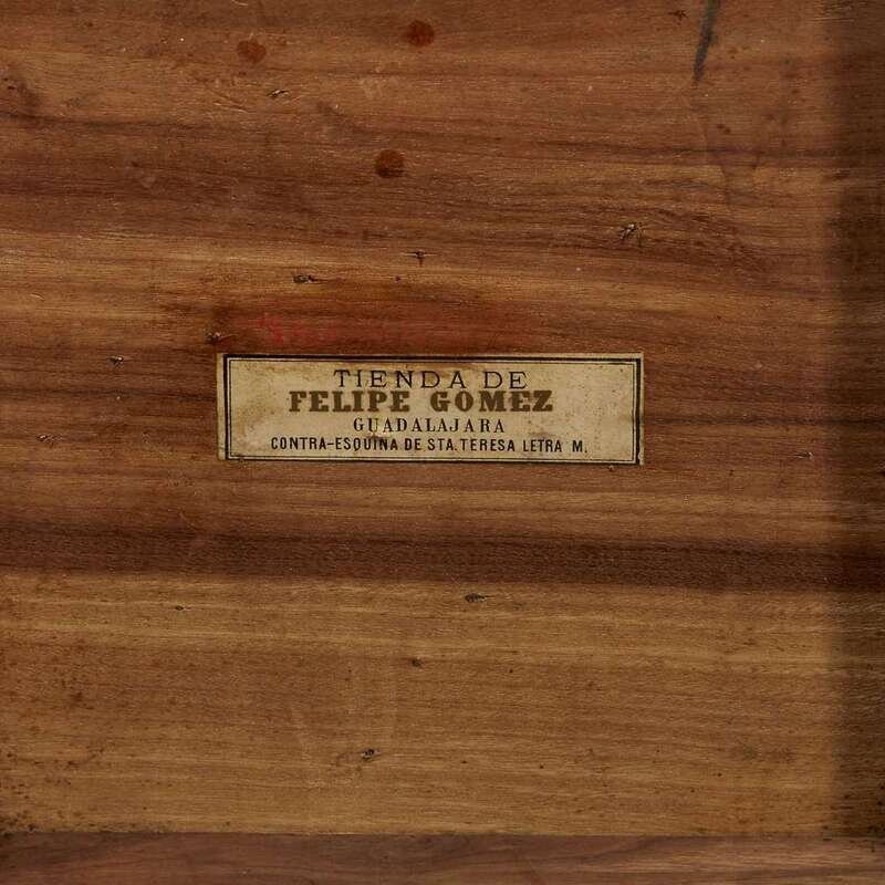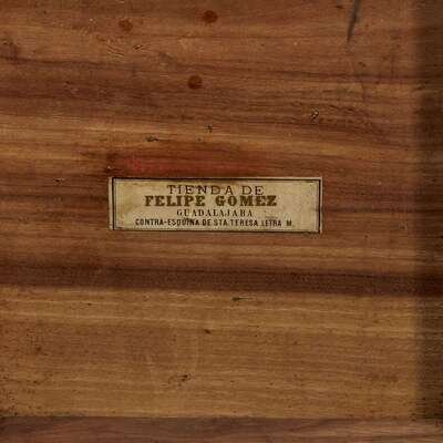 The interior with original retailer's label: "Tienda de/FELIPE GOMEZ/GUADALAJARA/Contra-Esquina de Sta. Teresa Letra M."