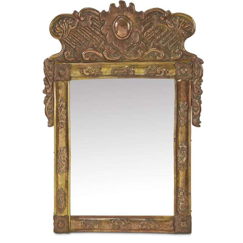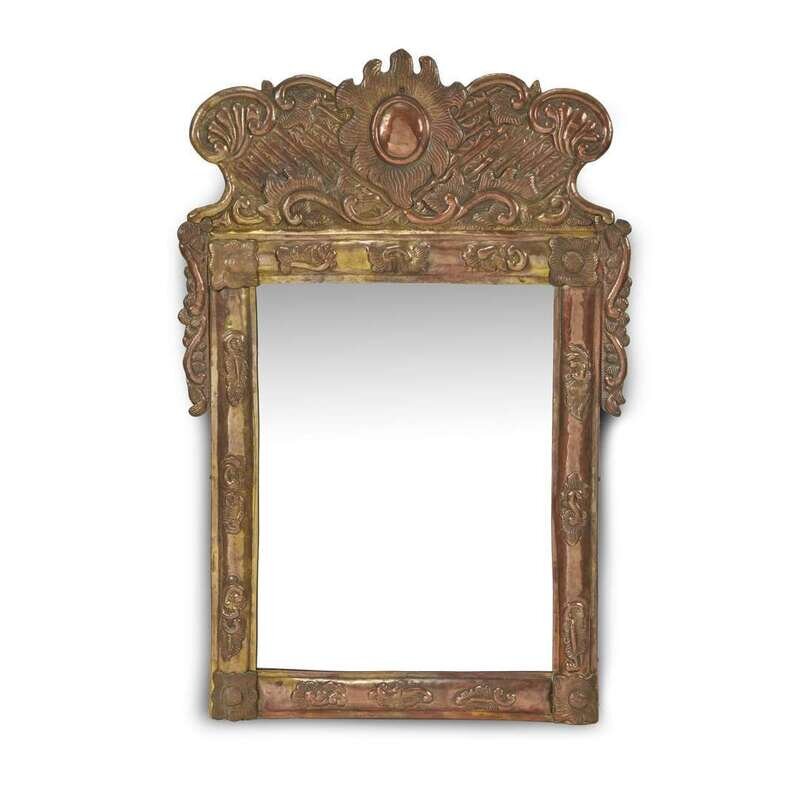 A PAIR OF MEXICAN PARCEL-GILT AND HAMMERED COPPER MIRRORS 19th century