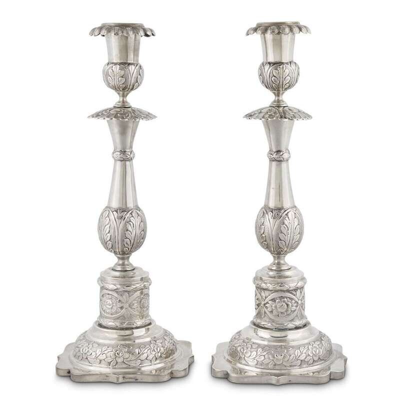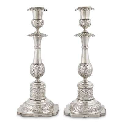 A PAIR OF MEXICAN SILVER CANDLESTICKS likely 19th/early 20th century